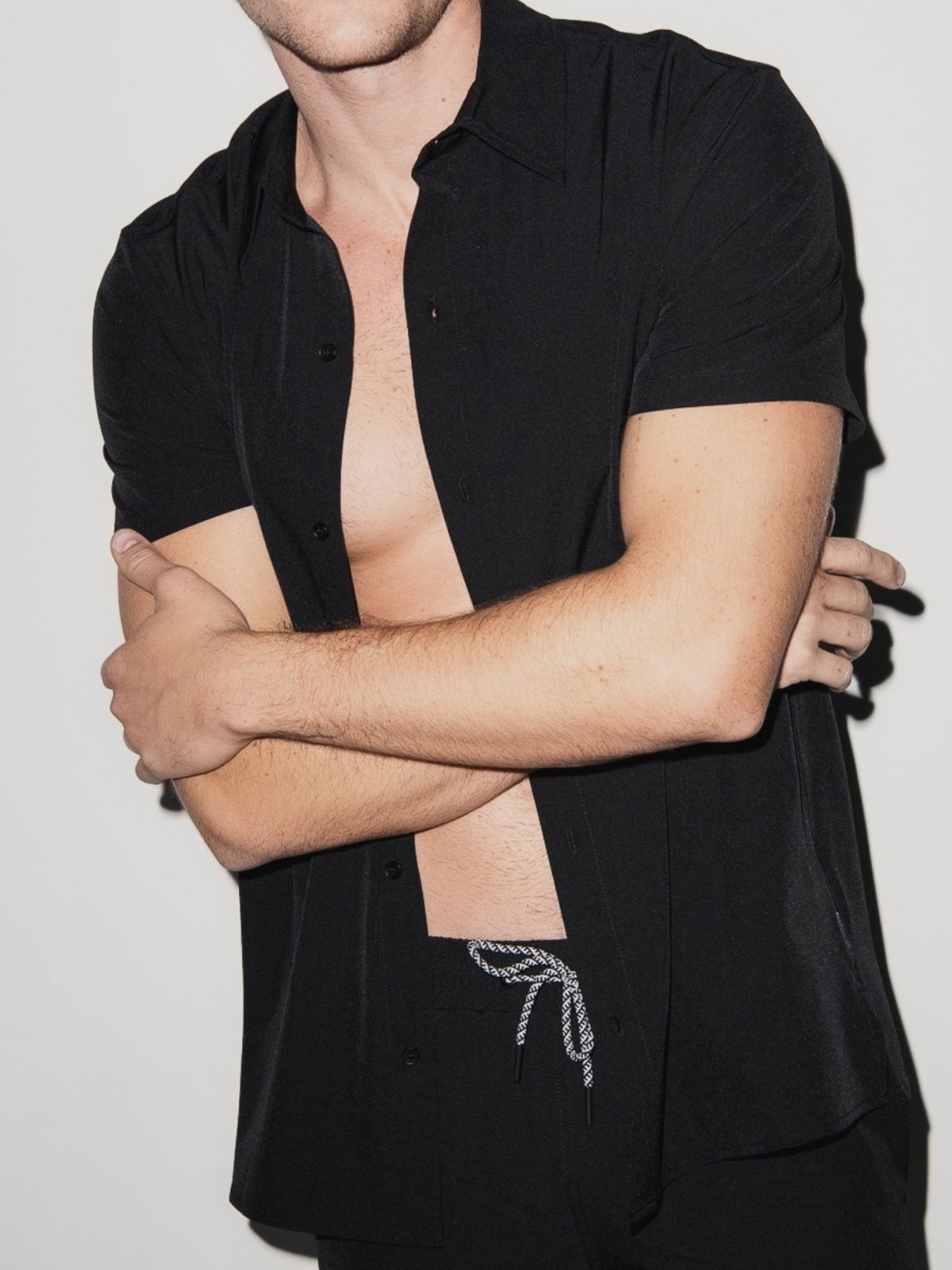 Coordinated shirts and swim trunks crafted from recycled fabrics with refined finishes. Designed for versatility from beach to street.